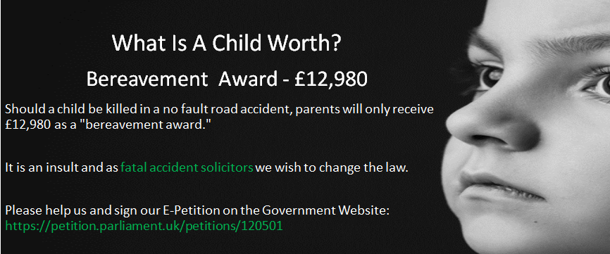 For more information of the injustice for bereaved families following a fatal accident please click on our webpage Bereavement Award.